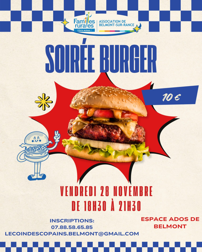 La prochaine soirée à l’espace ados de Belmont aura lieu le vendredi 28 novembre, de 18h30 à 21h30. Ce sera une soirée burger. Au cours de la soirée les ados cuisinerons pour préparer leurs burgers et les accompagnements. De petites animations seront prévues par Anne et Caroline pour animer la soirée. Pour s’inscrire merci de me contacter […]