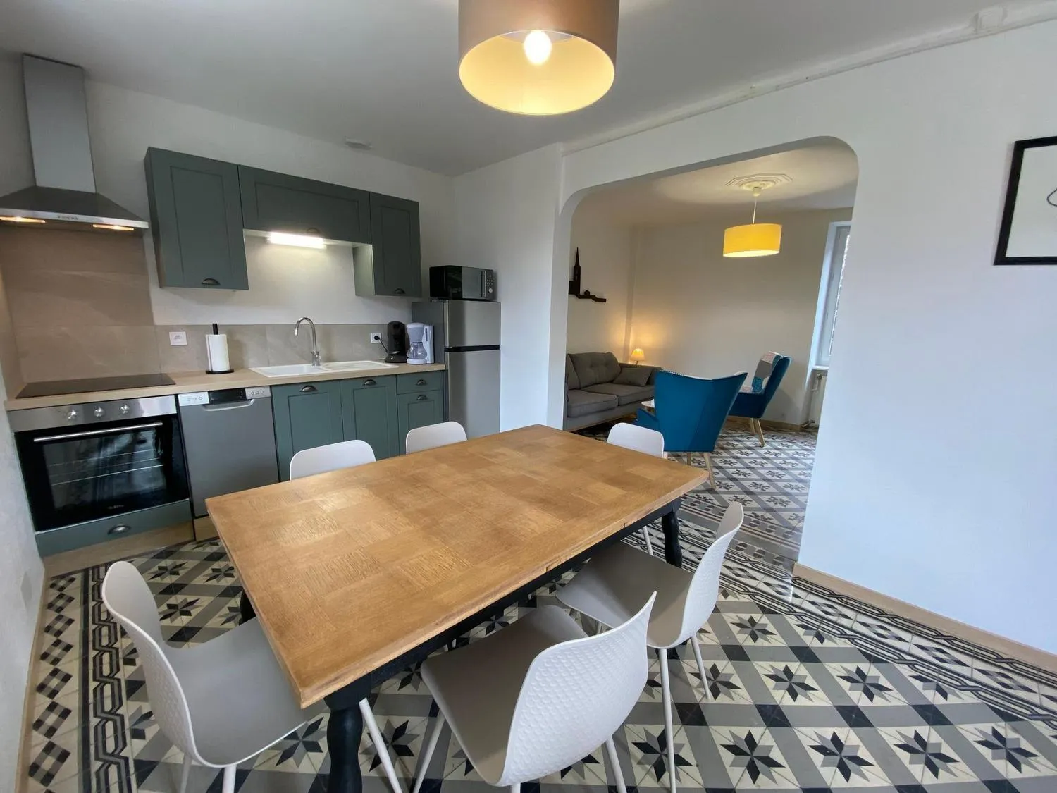 Gîte mitoyen aménagé sur 3 niveaux. Rez-de-chaussée : garage (uniquement pour vélos et motos). Au 1er étage : Cuisine équipée, salon (canapé, télévision, wifi), lave-linge. Au 2ème étage : 1 chambre (1 lit 140 avec salle d’eau privée dans la chambre), salle de jeux (canapé clic-clac 130, babyfoot), salle d’eau. Au 3ème étage : 1 chambre mansardée (2 lits 90). Chauffage central fioul. Terrasse (20m²) et jardin (200m²) clos privés, parking privé, salon de jardin, barbecue. Draps fournis et lits faits à l’arrivée. Commerces et activités de loisirs au village : parcours de santé, piscine (ouverte l’été), sentiers de randonnée…