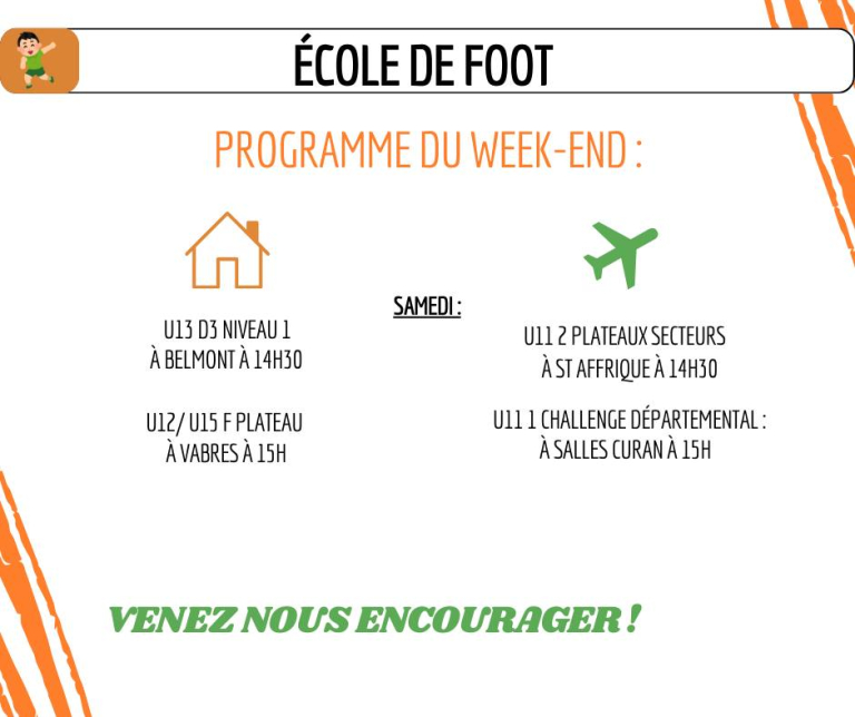 Programme du week-end pour notre école de foot : Reprise des plateaux sur herbe !! On espère un maximum de buts et de sourires au bords des terrains !!💚🧡